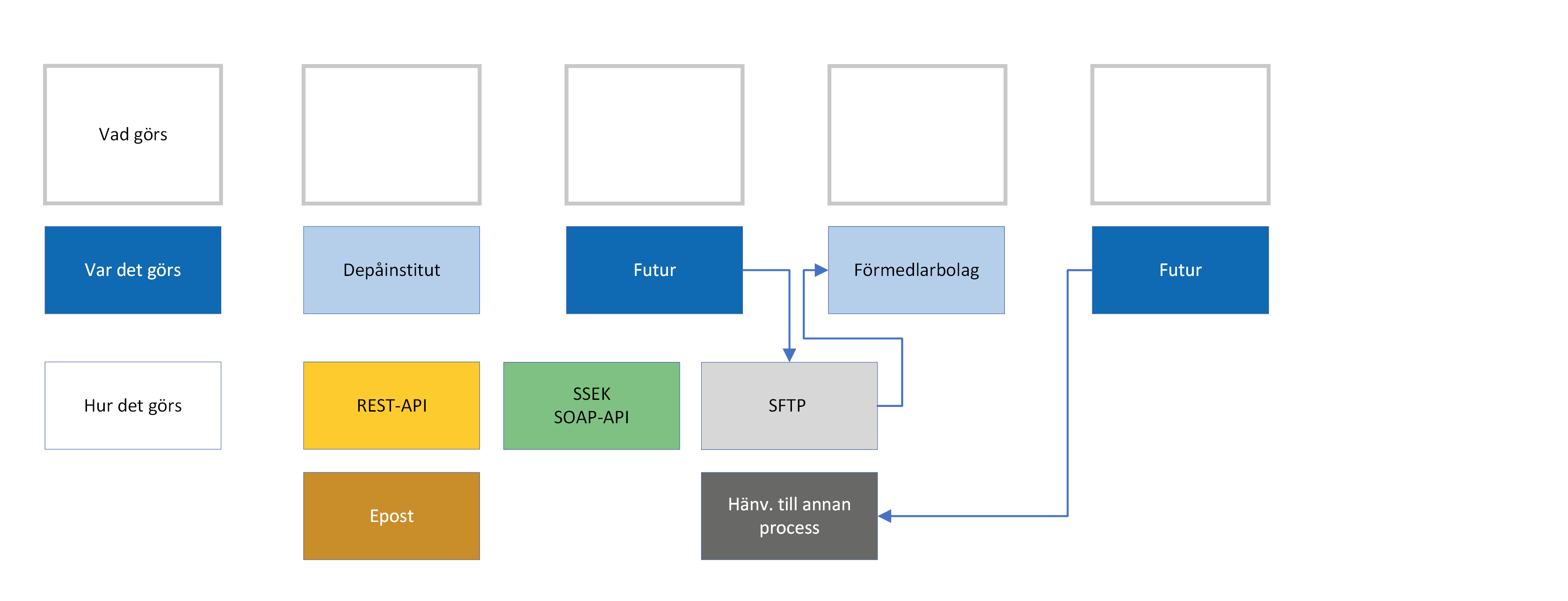 Kommunikation som sker via SOAP-API (SSEK) är grön